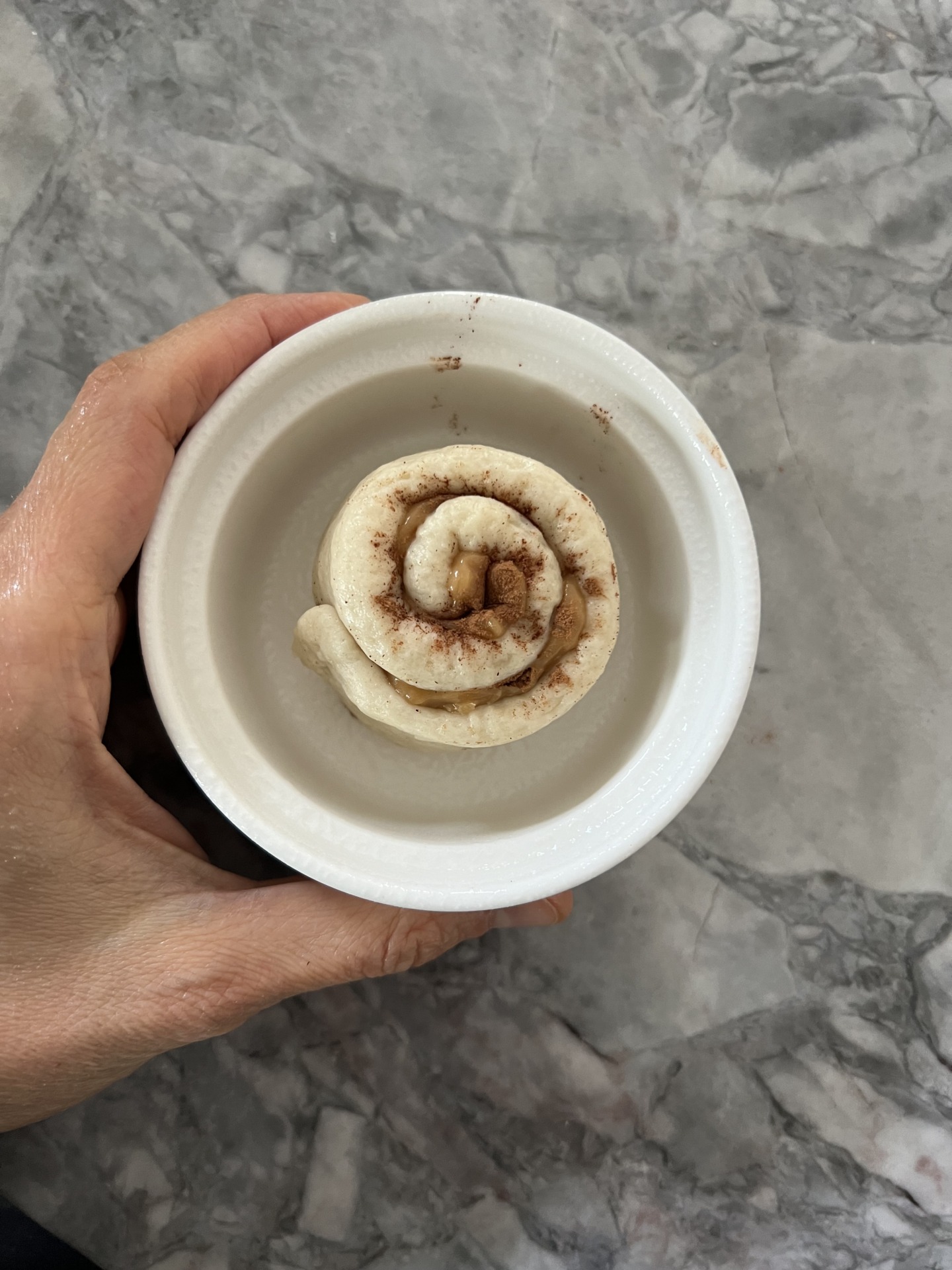 - Transfer the roll to the ramekin, bake 20 mins.