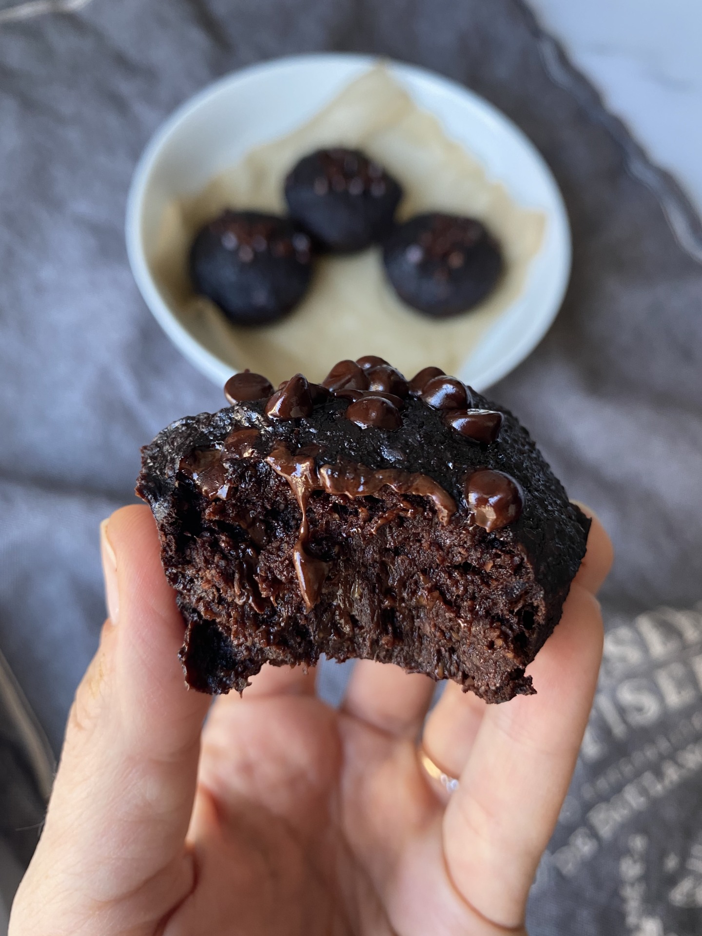 Easy, low-sugar, small-batch, naturally sweetened fudgy brownie muffins!